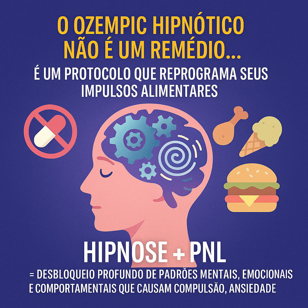 Transforme sua relação com a comida! Através de técnicas avançadas de Hipnose, PNL e Autossugestão, você reprograma a fome emocional, ansiedade e compulsão – direto na raiz do problema.
